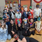 Passend zum Thema Fasching durften die Kinder im Werkunterricht Gipsmasken herstellen.