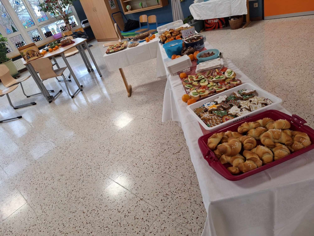 Für das leibliche Wohl sorgten engagierte Eltern mit einer liebevoll vorbereiteten „Teestube“. Mit Keksen, Broten, Nüssen, Mandarinen, Tee und weiteren Köstlichkeiten konnten sich alle zwischendurch stärken.